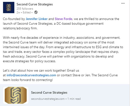 Business decisions and political strategy are converging like never before – and Second Curve is ready to help your organization navigate what’s next in Washington. Reach out to learn how!
